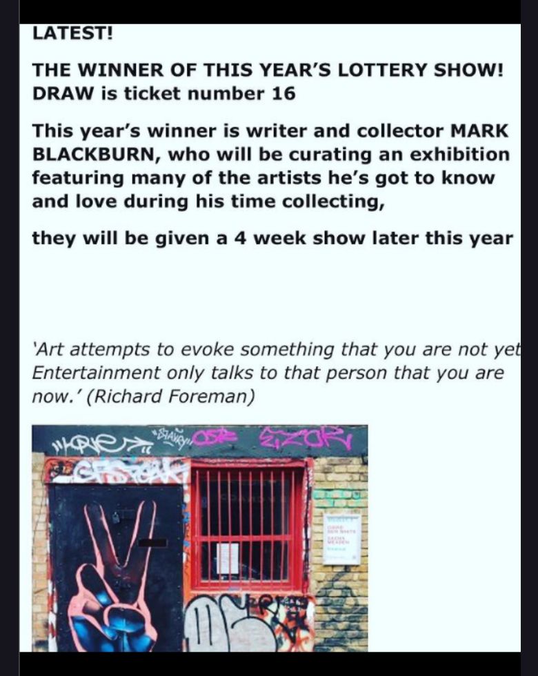 Yay! I won a lottery prize! Not THE lottery, but a lottery run by the @studio1.1_london gallery, whereby the holder of the winning ticket gets to put on their own show for a whole four weeks – how exciting?!